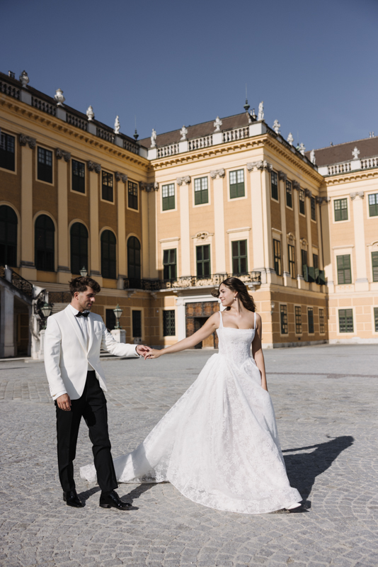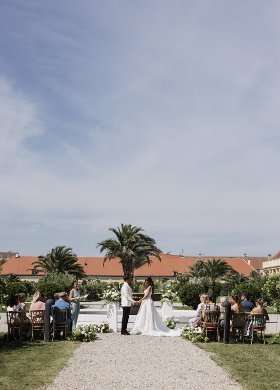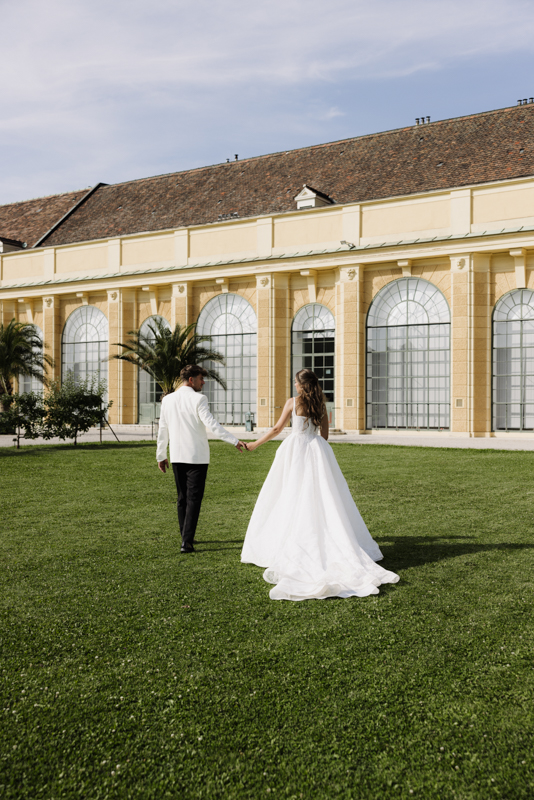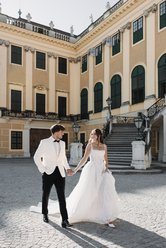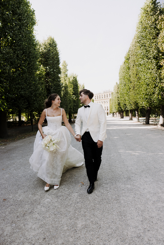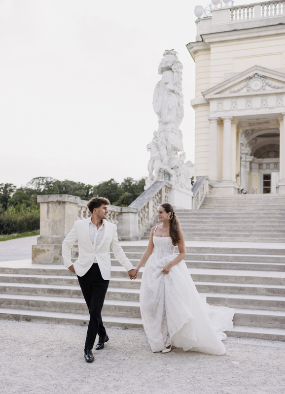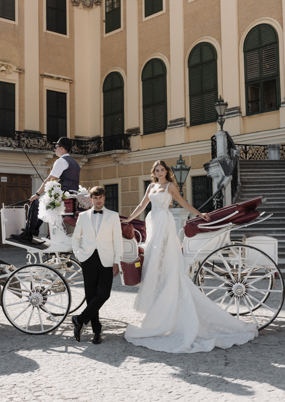 Die elegante Hochzeit von L&M im Schloss Schönbrunn in Wien war ein Fest voller Stil, Gefühl und zeitloser Schönheit. Inmitten der prachtvollen barocken Kulisse gaben sich die beiden das Ja-Wort – umgeben von Geschichte, Eleganz und einem Hauch Wiener Romantik.