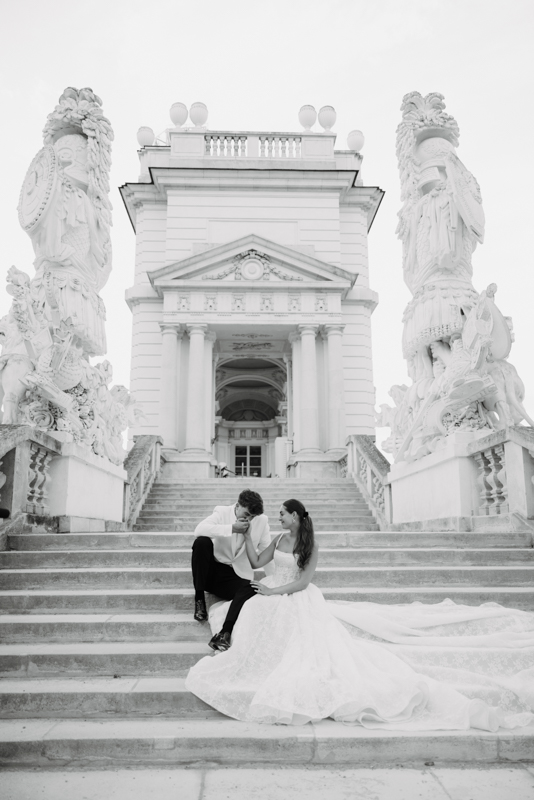 Jeder Moment – vom ersten Blick im Schlosspark bis zur emotionalen Trauung im historischen Ambiente – spiegelte die Verbindung von klassischer Schönheit und modernem Zeitgeist wider. In unseren Bildern haben wir die Magie dieses besonderen Tages eingefangen: sanftes Licht, echte Emotionen und die unverwechselbare Atmosphäre von Schloss Schönbrunn.